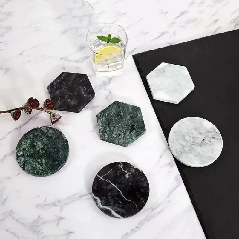 Each coaster is made from natural marble, so slight colour variations and texture differences are normal — and part of their charm.