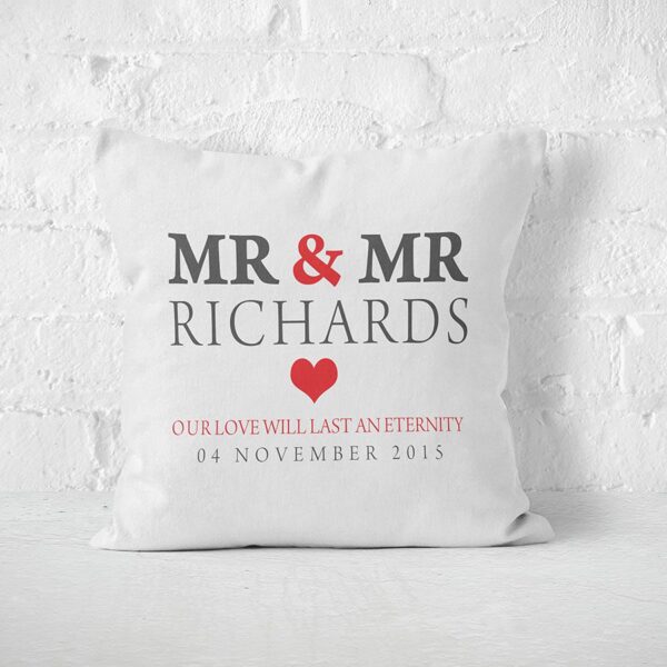 All text on the design is displayed in uppercase black font, giving the cushion a modern yet sophisticated look. Personalisation ensures it becomes a keepsake that will be treasured for years to come.