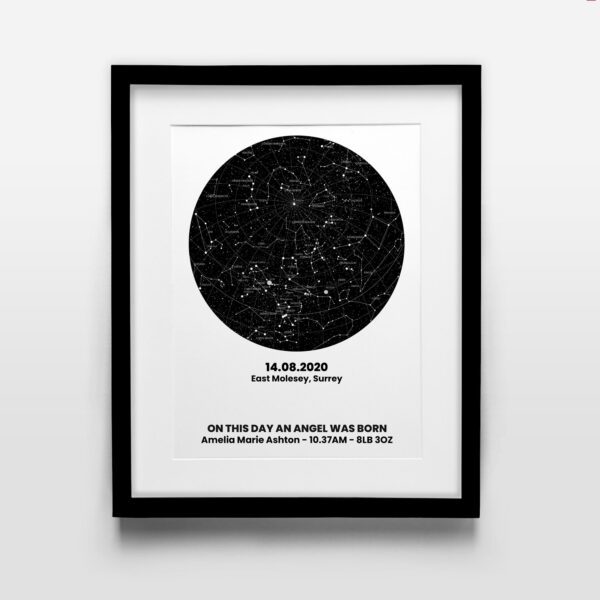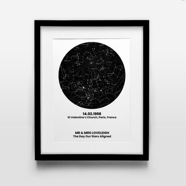 Celebrate a moment that meant the universe to you with our Personalised Star Map Framed Print, available in A4 or A3. This stunning celestial artwork captures the exact arrangement of the stars at a chosen date, time, and location, creating a timeless keepsake that’s as meaningful as it is beautiful.