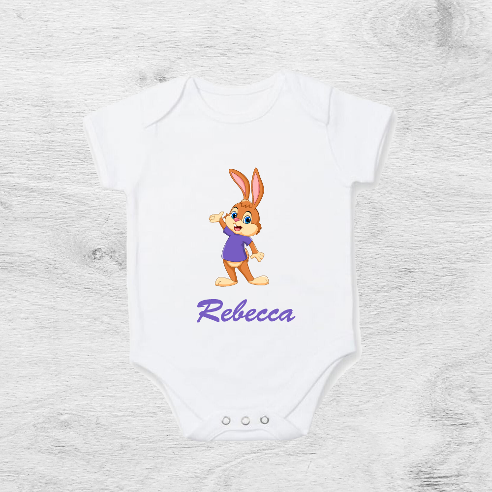 Available in two soft writing colours – pink or purple – and adorned with a sweet bunny illustration wearing matching bunny clothes, this adorable vest can be customised with the baby’s name, making it a truly thoughtful and unique gift. Whether you’re welcoming a newborn, celebrating a first Easter, or just shopping for an irresistibly cute outfit, this vest is a delightful choice.